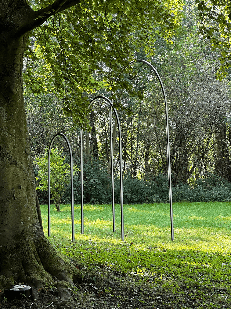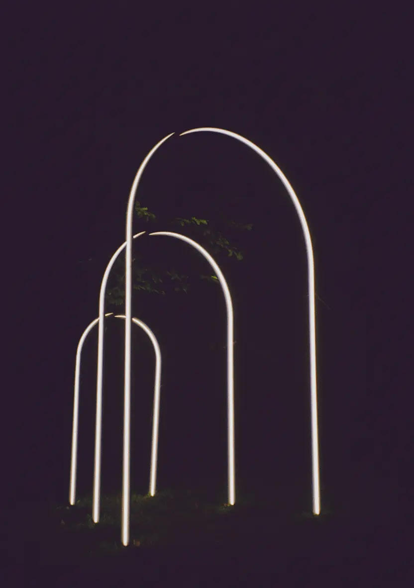 Dit kunstwerk is gemaakt door Jeroen Alexander Meijer, met een liefde voor licht, ruimte en rituelen. Het idee ontstond om iets te maken dat toevoegt aan bijzondere momenten – iets dat licht laat schijnen op de mensen onder de bogen en de omgeving er om heen.